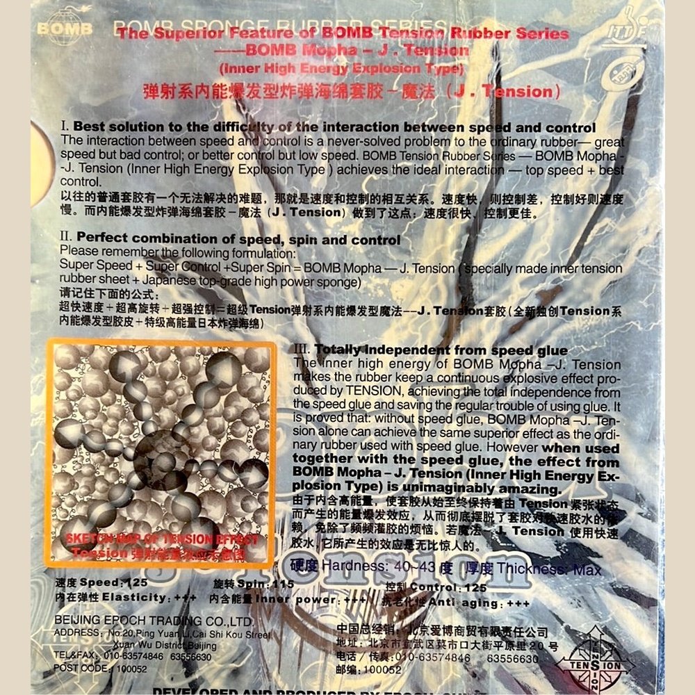 I. MOPHA TENSION Rubber Introduces the Global Leading Technique---OSCULE COAT TECHNOLOGY The plate-shaped concavity spread all over the surface of rubber is able to built up a very strong oscule effect at the point of touching the ball.