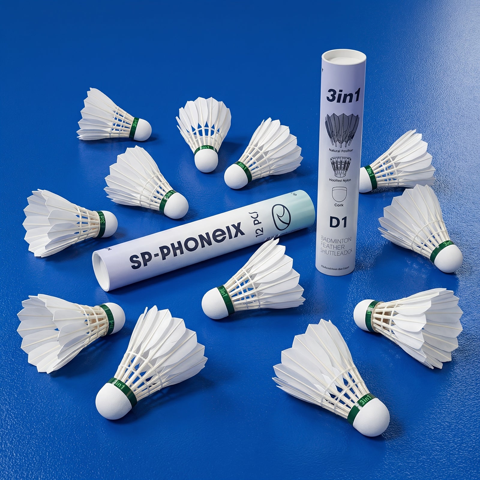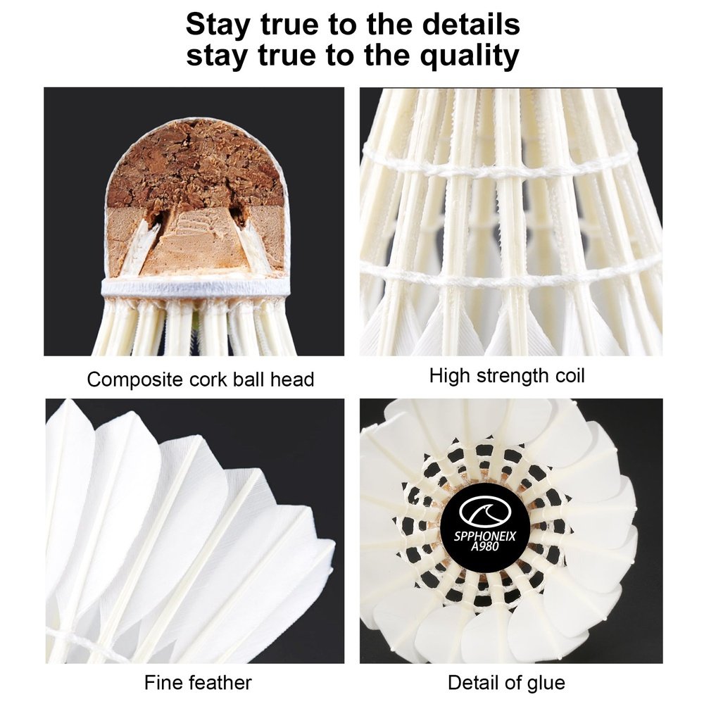 SPPHONEIX D1 Badminton Shuttlecocks Goose Feather 12pcs Professional 3 In 1