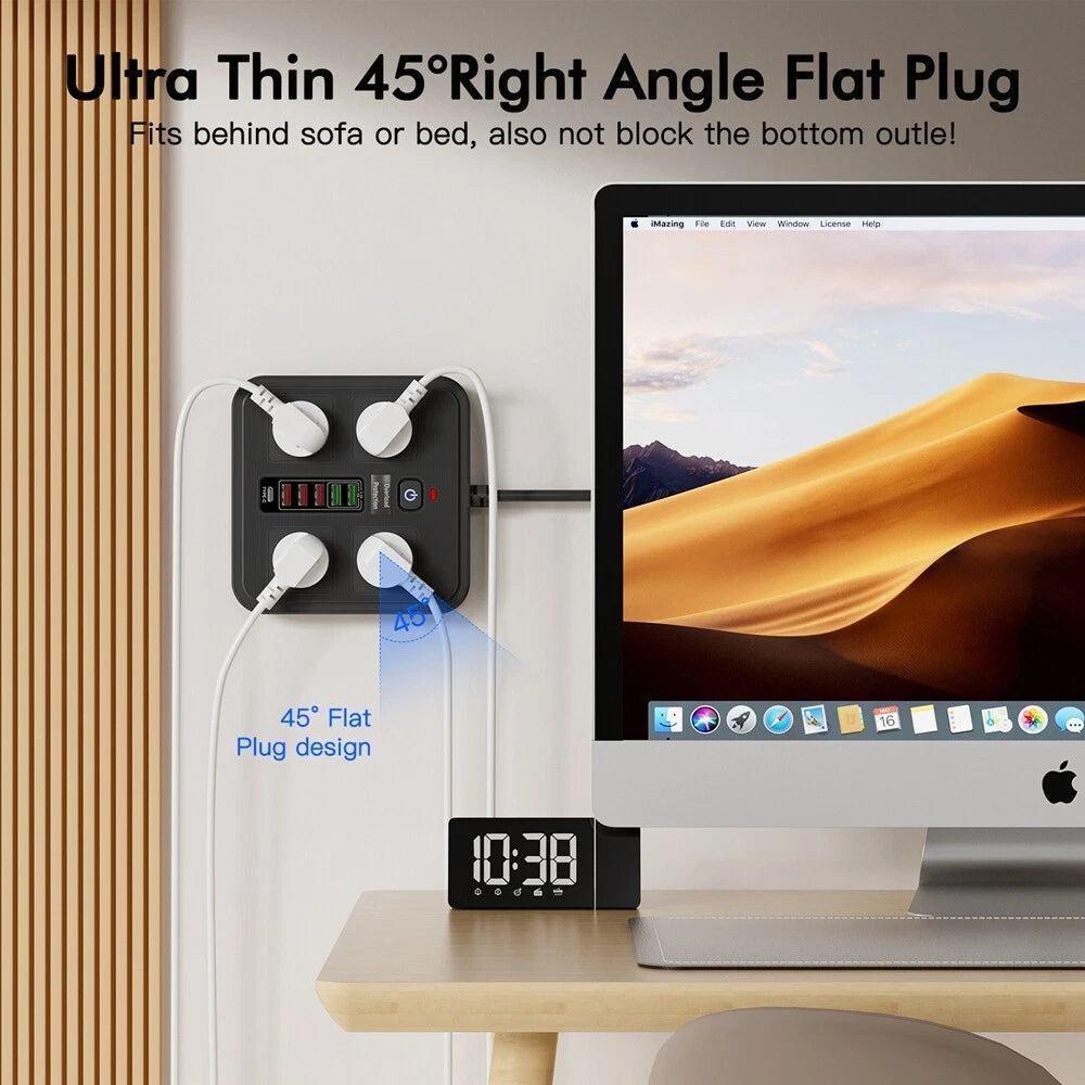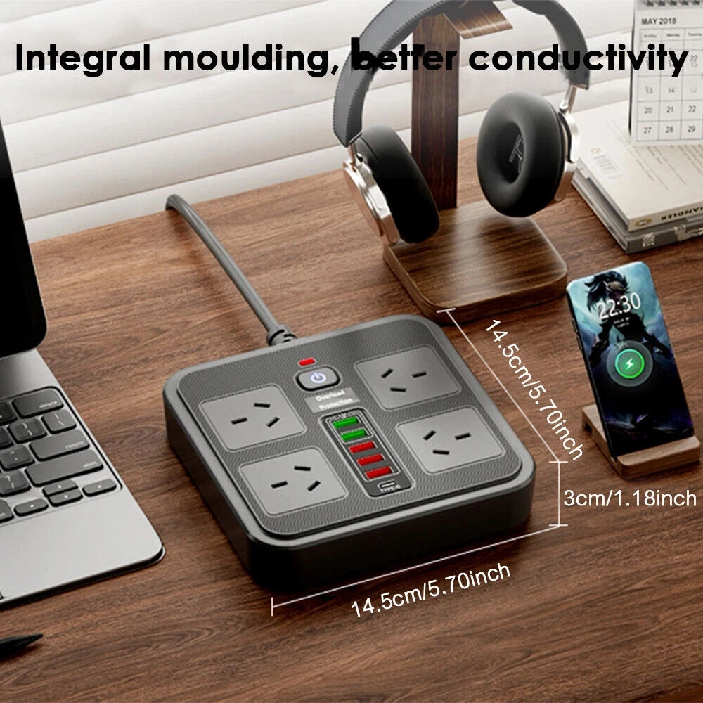 This Power Strip with Overload Protection is designed for safety, convenience, and versatility. Constructed from PC flame-retardant material, it features multiple AC outlets and a fast-charging function for efficient power management. The built-in overload protection switch safeguards connected devices, while its wide voltage and current compatibility (100V–250V, 2500W) ensures reliable performance. The 2-meter cable (1.8 meters exposed) provides flexible placement, and the Australian standard plug makes it suitable for local use. Ideal for home or office, each package includes one durable and practical power strip.