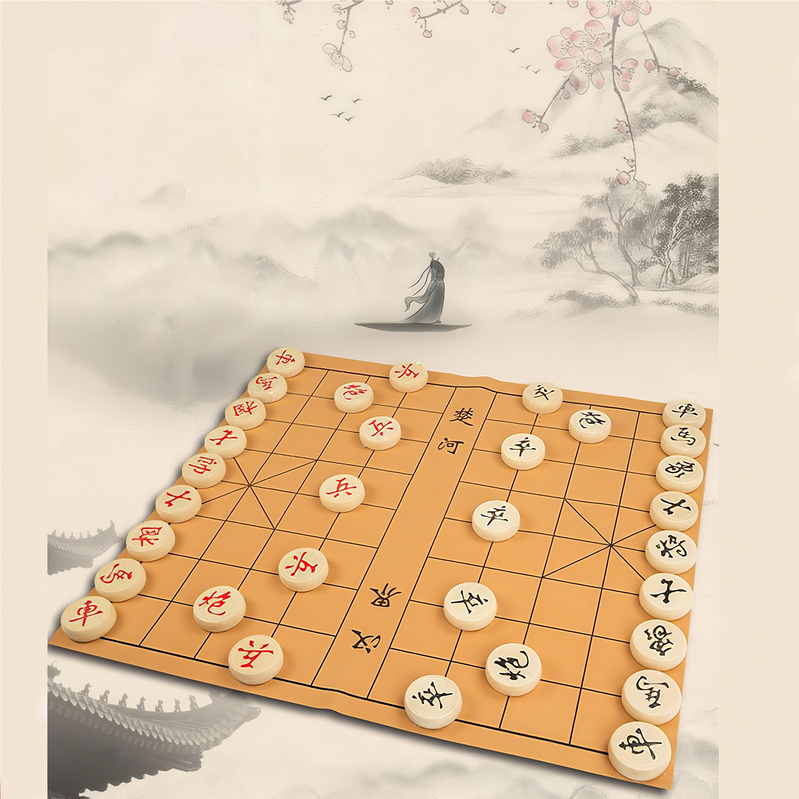 Chinese chess is a two-player board game. Each player has 16 pieces on the board, including the general, bishop, knight, chariot, cannon, and pawn, with the general being the king. At the beginning of a game, each player moves their pieces to capture the opposing general. The game ends when one player is in checkmate and cannot be removed.